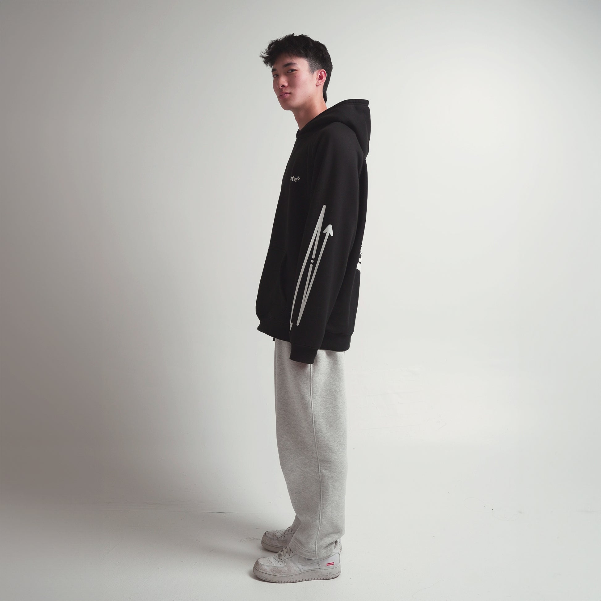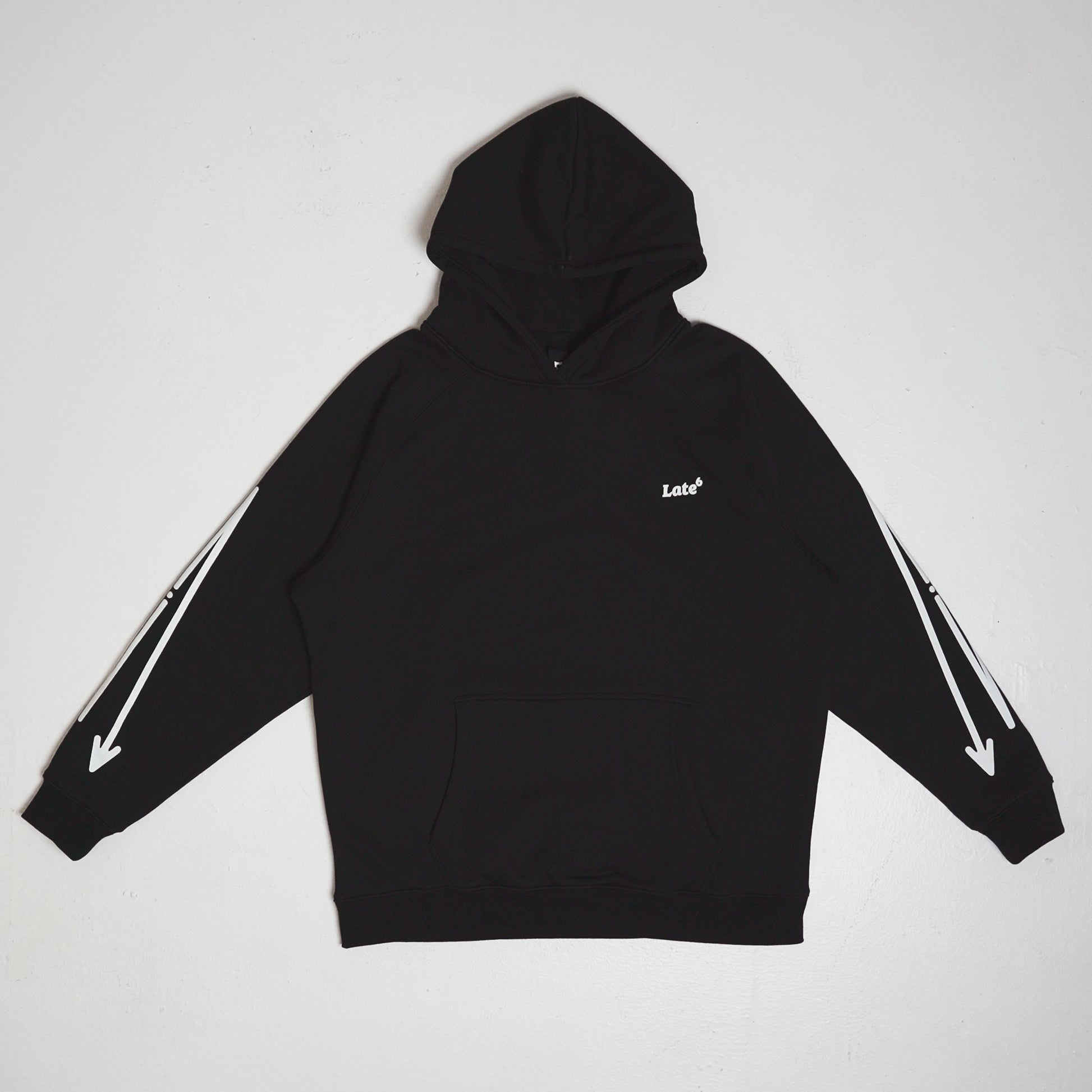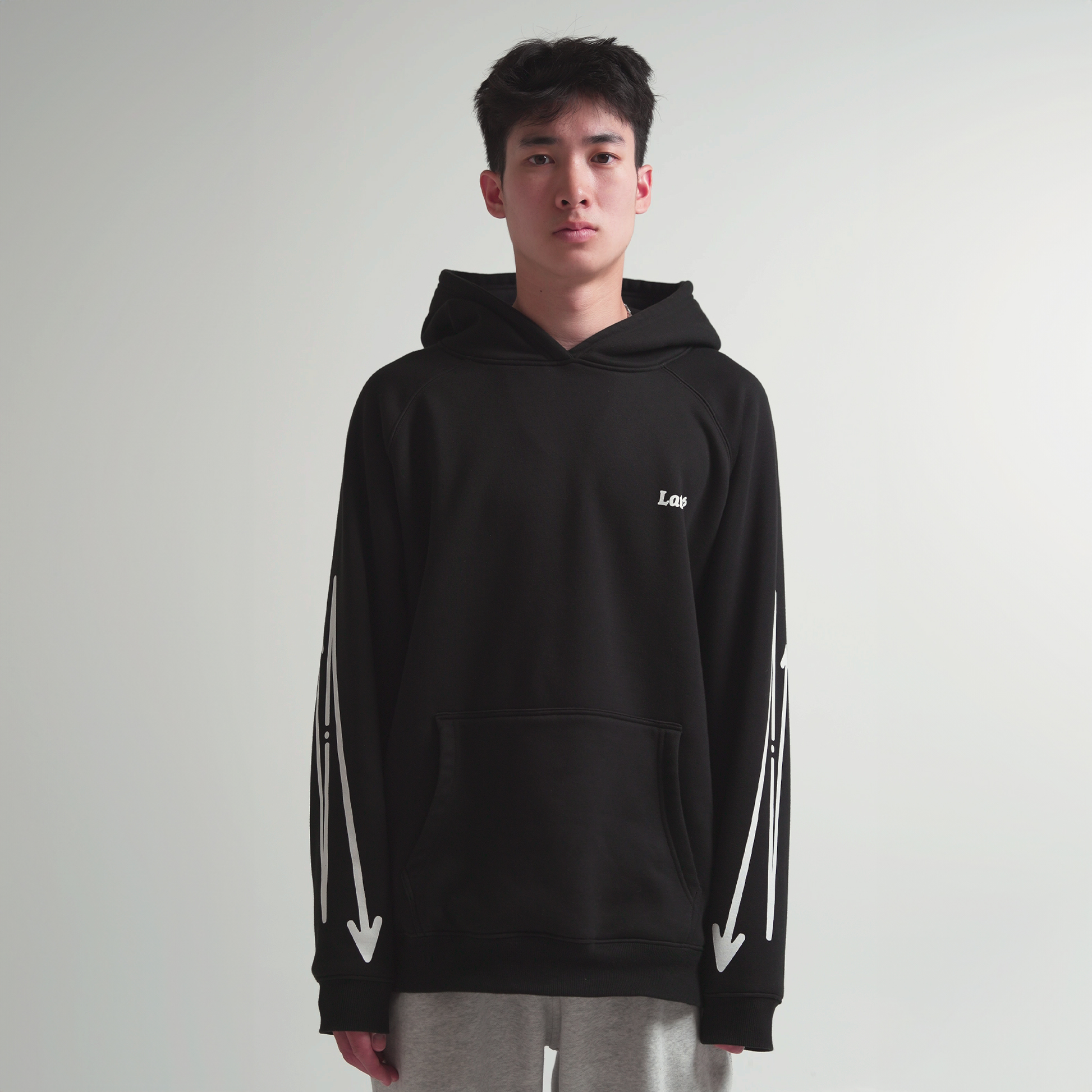 Relaxed fit fleece hoodie in a heavyweight 330gsm pure cotton. Screenprinted graphics at left chest and across back